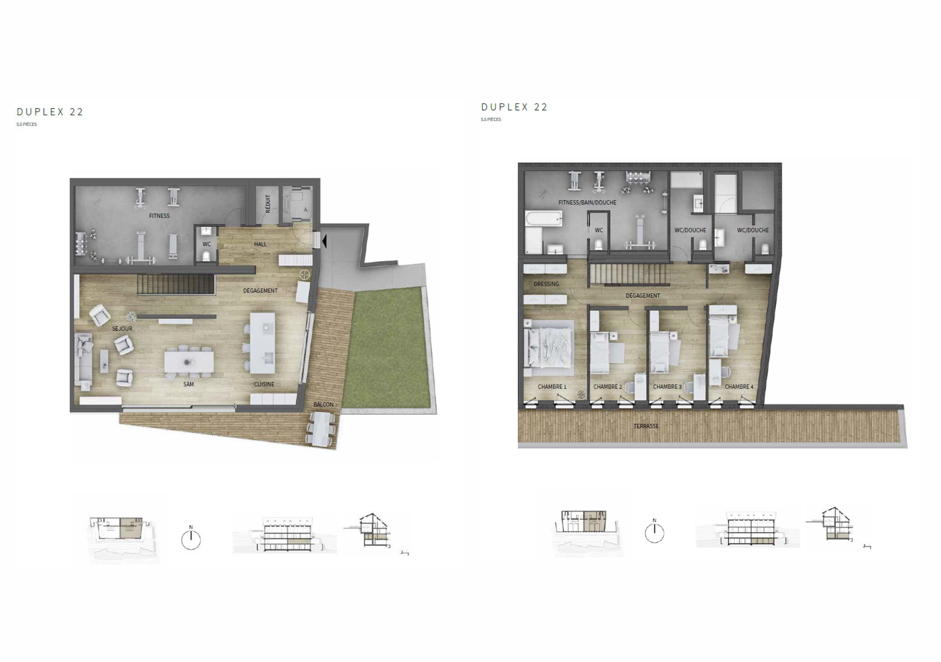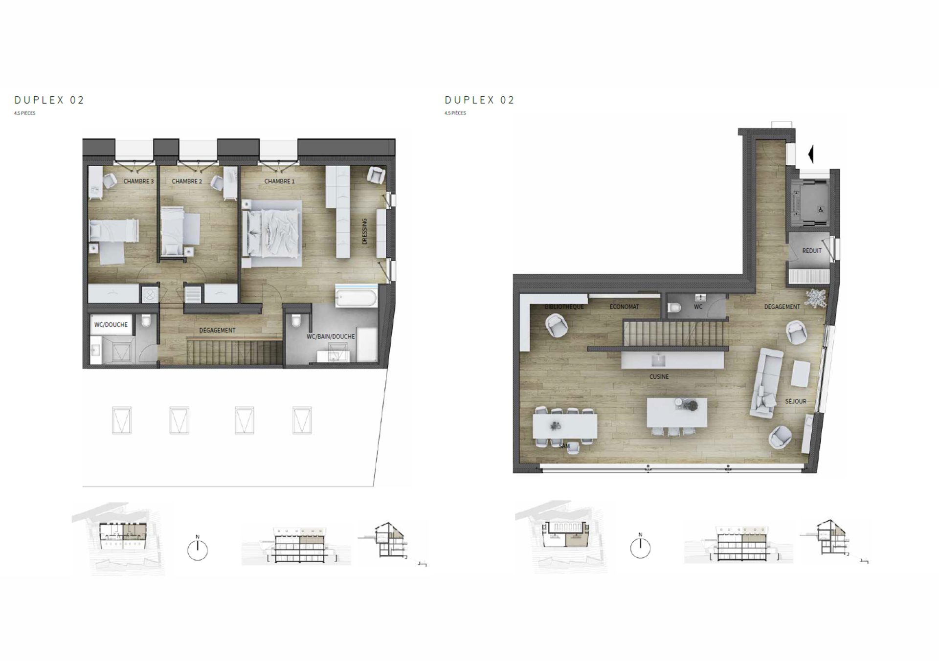 Chaque appartement possèdent deux places de parc intérieures à CHF 40’000.-. chacune en sus du prix de vente.